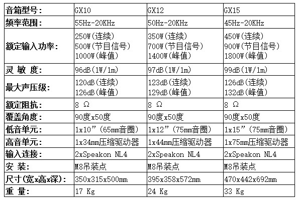 GX系列揚(yáng)聲器系統(tǒng)采用******的夾層板制作而成,外涂高強(qiáng)度耐磨涂層,使系統(tǒng)在搬運(yùn)或安裝過程中得到有效的保護(hù)。高質(zhì)量的模壓鋼制網(wǎng),可以有效的保護(hù)單元,抑制系統(tǒng)大功率下的有害振動(dòng)。此系統(tǒng)專為慢搖吧場所而設(shè)計(jì),也可以用于大型的Hi房、KTV包間等娛樂場所,還可以用于各種演出。全頻箱都設(shè)有梯形角度、支撐座及M8的吊點(diǎn),便于工程安裝及適應(yīng)各種不同的用途。各音箱均通過標(biāo)準(zhǔn)消聲室檢測一致性,確保其品質(zhì)。
