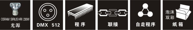 電源&光源 電壓:AC100-240V, 50/60Hz 功率:470W 燈泡:YODN MSD 330W 17R 色溫:8000K, 壽命:2000H
