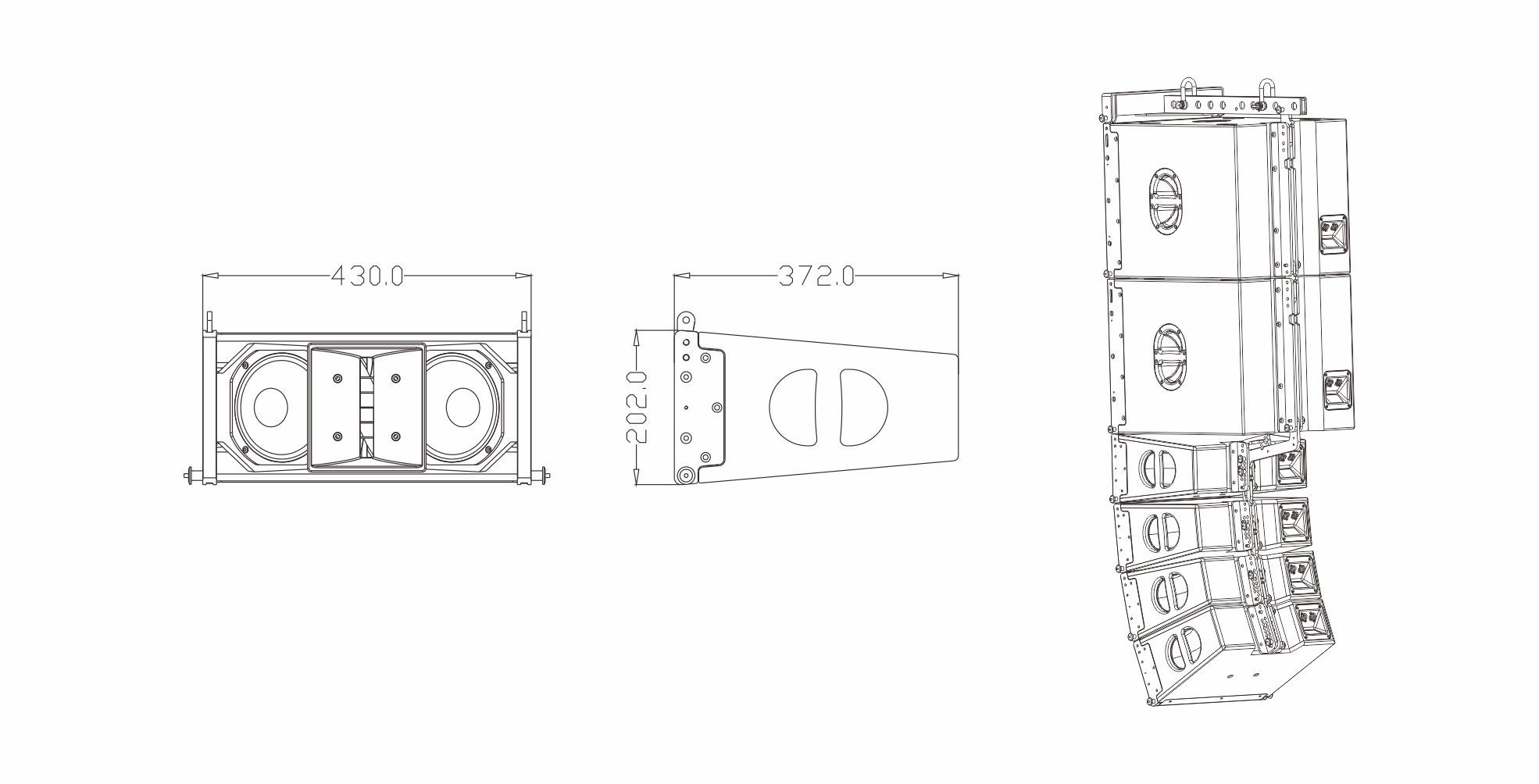 DLA206是一款小型線性陣列音箱,具有體積小、重量輕等特點(diǎn),應(yīng)用低失真中低音單元,高品質(zhì)高音驅(qū)動(dòng)器,配上專用波導(dǎo)管及號(hào)角。三點(diǎn)吊掛系統(tǒng)安裝快捷、穩(wěn)定、安全。單元配置:2只6"高效率釹磁中低音單元,1只1"喉口44芯釹磁高音驅(qū)動(dòng)器;箱體采用多層復(fù)合夾板,耐磨聚脲噴涂。